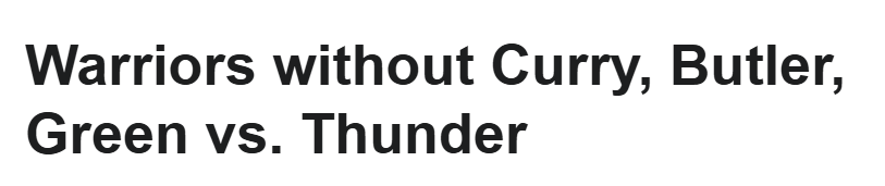 格林此役轮休;库里则是在周四球队战胜夏洛特黄蜂的比赛末段,左脚踝不慎扭伤;巴特勒起初并未出现在伤病报告中,但自己周六突发疾病,最终被列入缺阵名单。