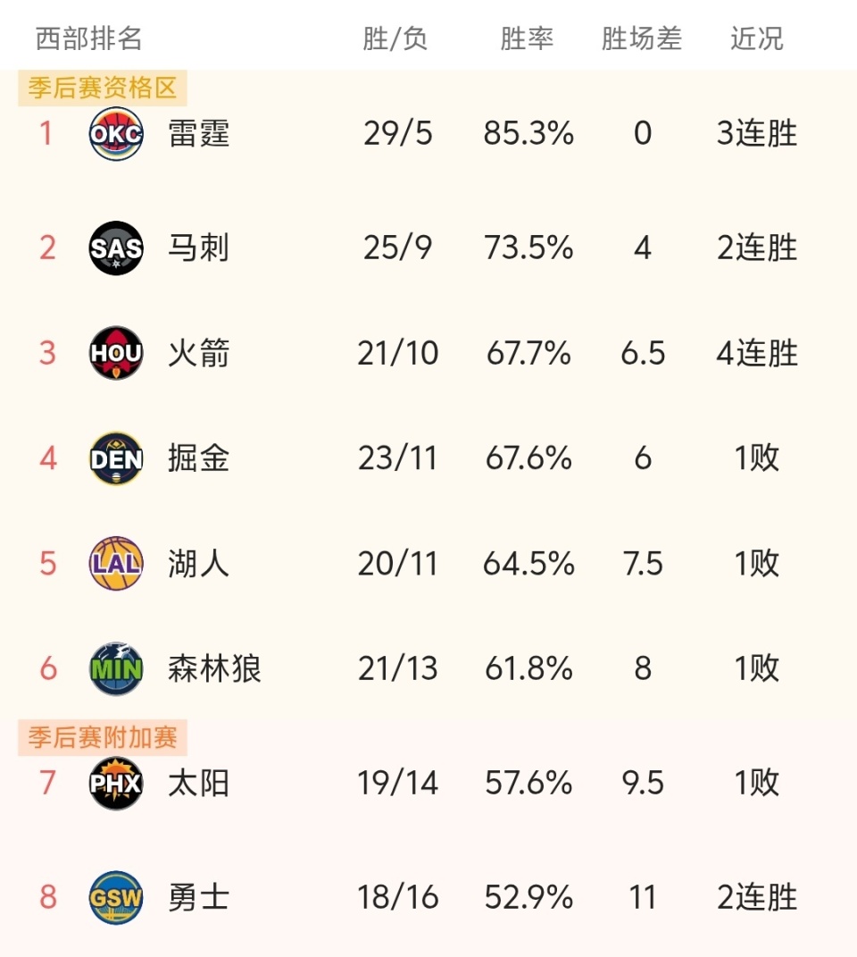 随着掘金108-113惜败,马刺赢球,NBA最新积分榜出炉:火箭超掘金,重回第3!