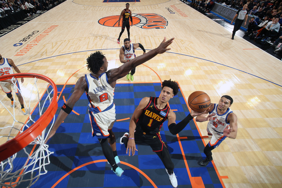 老鹰111-99击败尼克斯,贾伦-约翰逊出战38分钟,14投7中,得到18分10篮板11助攻2抢断,他本赛季7次拿到三双,刷新队史单季三双纪录,在联盟中仅逊于约基奇。