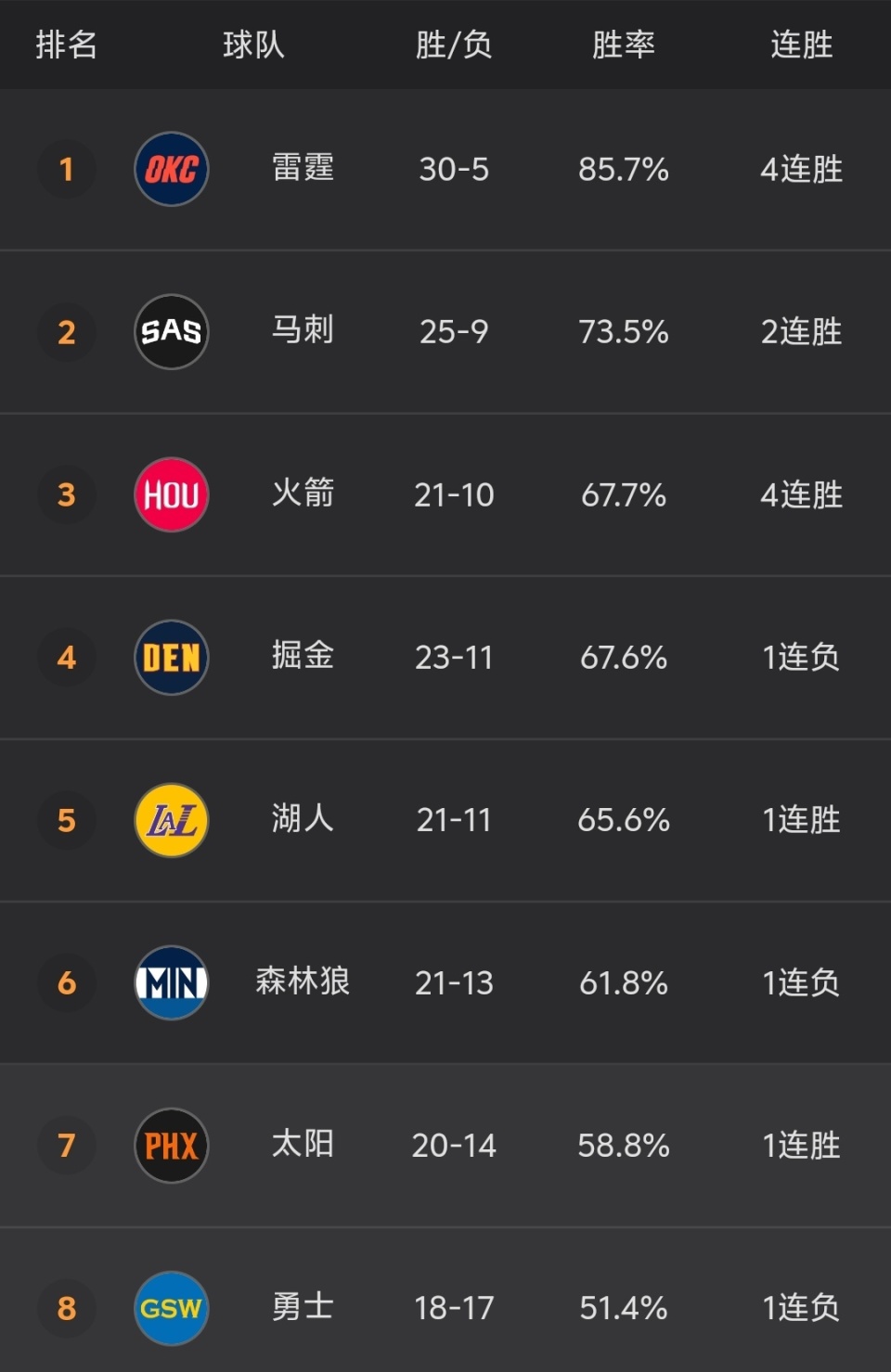 随着湖人128-121险胜,掘金输球,NBA最新积分榜出炉:西部3-5名太乱!