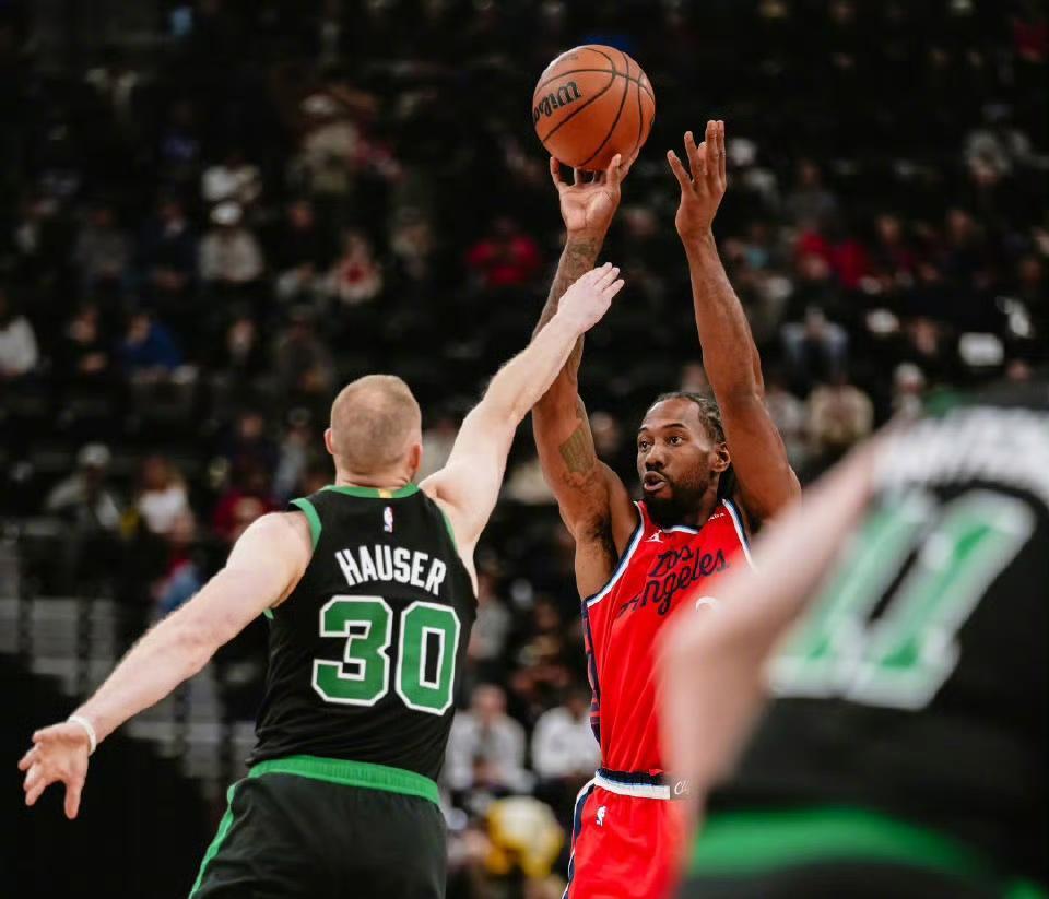 本场比赛,双方在首发阵容上面,快船这边派出的是,哈登,伦纳德,邓恩,科林斯和大洛佩斯。凯尔特人这边派出的是,普理查德,怀特,杰伦-布朗,豪瑟和克塔。首节比赛开始,绿军率先拿到球权,怀特的三分干拔跳投一击命中,打进本场比赛首个进球,伦纳德侧翼三分突施冷箭也为快船开张,布朗罚球线干拔跳投稳稳命中,豪瑟的追身三分发炮同样也有,科林斯顺切篮下接球暴扣技惊四座,克塔不甘示弱,禁区吃饼震荡灌篮还击一球,怀特的超远自信三分开火一箭穿心,科林斯转身上篮擦板命中,哈登电光火石上篮,转瞬终结拿下两分。