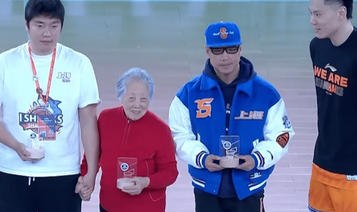 王哲林作为现任队长获赠象征上海男篮精神的金色篮球。