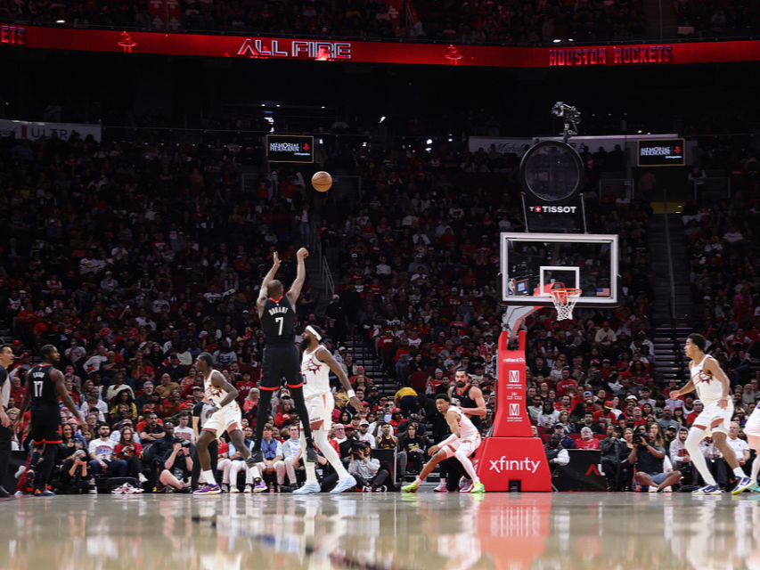 太阳队延续火热手感,半场结束时三分球21投10中,命中率47.6%。而火箭队三分球21投仅5中,命中率只有23.8%。