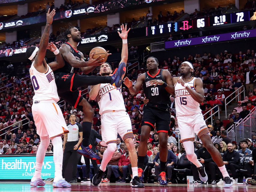 半场结束,太阳以60-54保持领先。布克、吉莱斯皮和古德温各得11分。杜兰特为火箭贡献13分、6个篮板和4次助攻。