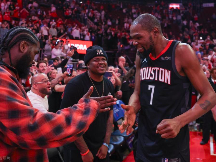 火箭替补席上的球员全部冲入场内,将杜兰特团团围住,这位35岁的老将表情平静,只是轻轻点了点头,仿佛这只是一次普通的投篮训练。
