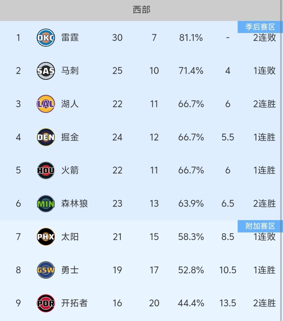 随着掘金加时125-124爆冷、火箭险胜,NBA最新积分榜出炉:火箭第5!