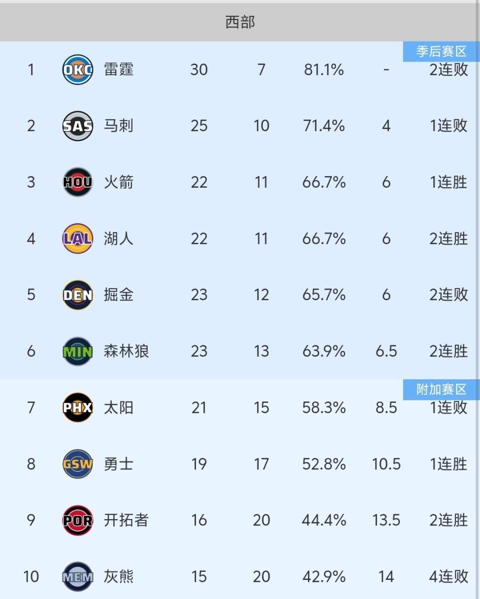 随着火箭100-97绝杀,反超湖人掘金,NBA最新积分榜出炉:火箭排名第3!