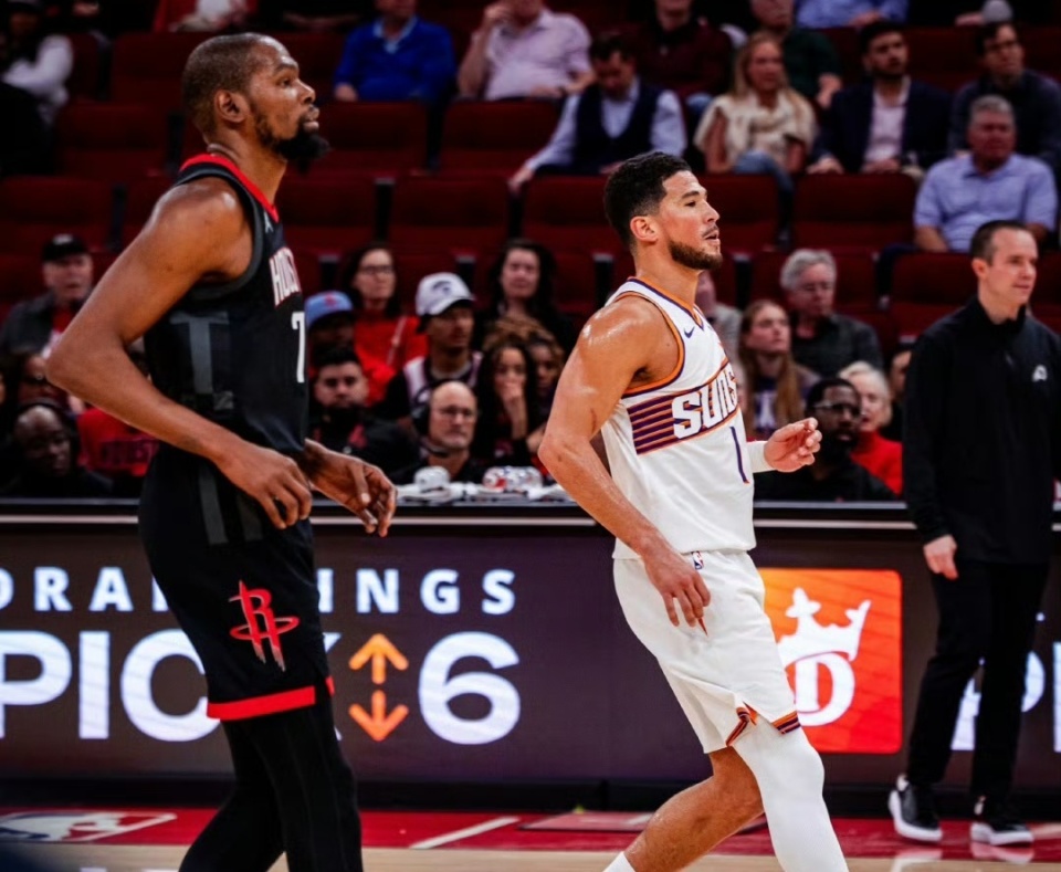 本赛季西部比较混乱,雷霆一骑绝尘,马刺强势崛起,除此之外,受伤病影响,掘金和湖人的战绩都不稳定,其实火箭有很好的机会打出好的排名,结果火箭自己也是发挥得磕磕绊绊,西部排名靠后的球队火箭几乎都输了一遍,而太阳队则是有明显的进步,在杜兰特的大交易过后,太阳显然过度的更好,而且太阳目前状态正佳,今天这场球两队正面交锋,狄龙布鲁克斯和杜兰特都是战旧主!