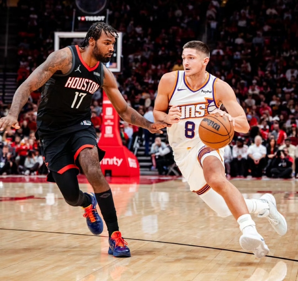 第二节杜兰特的三分依然很铁,不过近筐的攻击和罚球还不错,伊森和阿门都是努力的在打反击,伊森的三分还可以,替补席谢泼德、霍乐迪和芬尼史密斯都有贡献,不过火箭队的防守很吃力,太阳队现在虽然只有布克一位当家球星,但是并不是防住布克就能解决问题的,太阳的球权非常分散,能出手投篮的人很多,中场休息时,火箭54-60依然落后!