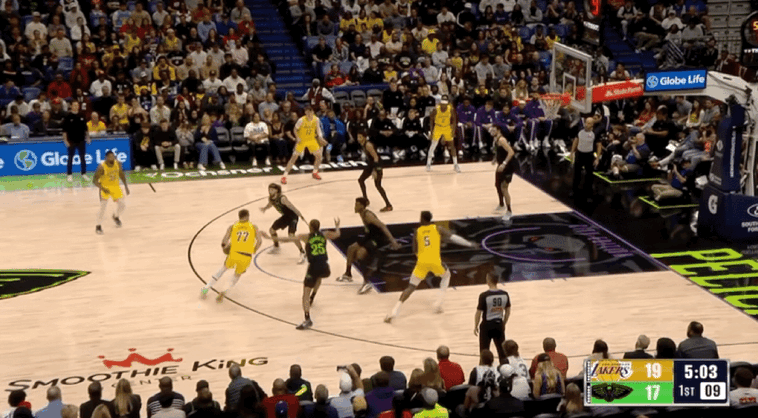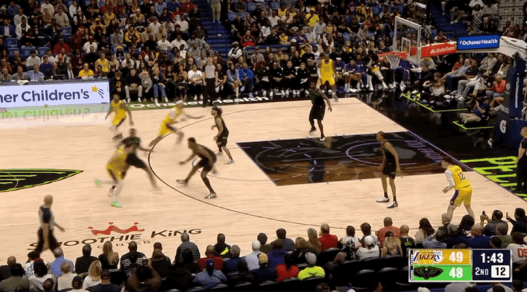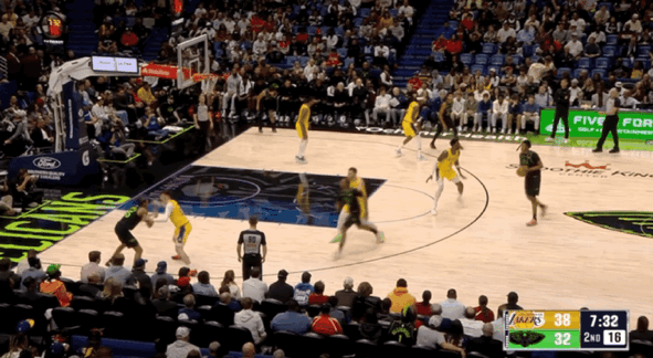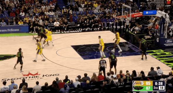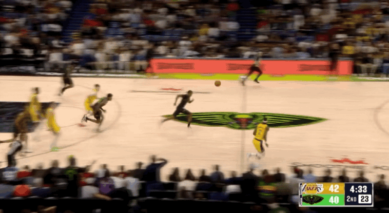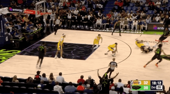 湖人三线配合由詹姆斯折叠暴扣终结