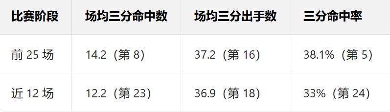 以下是球员的三分命中率变化——