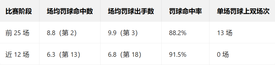 在这段低迷期,雷霆队场均罚球得分减少了近3分。值得注意的是,全队本赛季唯一一位场均罚球出手超过3.8次的球员——亚历山大,几乎包揽了这份数据下滑的全部原因。