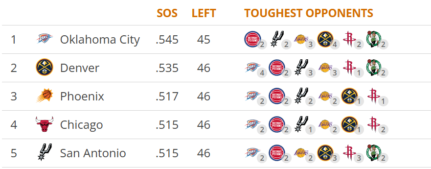 赛程难度的提升,是雷霆队战绩滑坡的另一个关键因素。