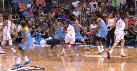WNBA的首次扣篮则要等到2002年。在联盟成立第六年,洛杉矶火花队的丽莎-莱斯利——同时也是美国女篮传奇名宿——在对阵迈阿密索尔的比赛中快攻接球,狠狠将球砸进篮筐,随后张开双臂跑回后场,与队友相拥庆祝。