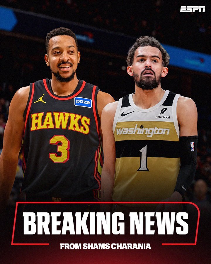 北京时间1月8日,NBA大交易来了,据ESPN名记Shams Charania报道,亚特兰大老鹰队将四次入选NBA全明星的特雷-杨交易至华盛顿奇才队,换来CJ-麦科勒姆和科里-基斯珀特。