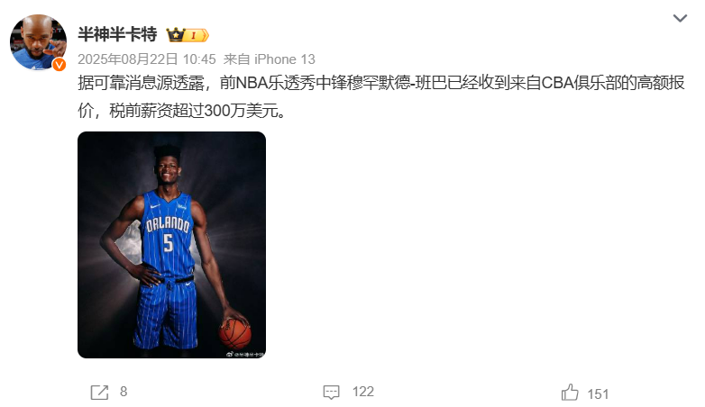 目前尚不清楚班巴的未来规划,但无非两条路,要么继续追梦NBA,要么选择前往海外联赛捞金。