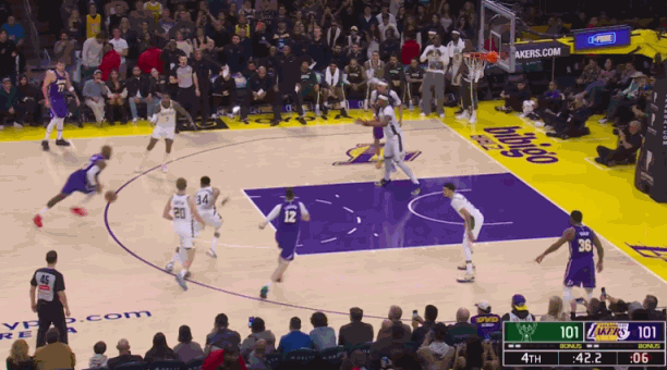 最后3.3秒,字母哥伸手拦截,合法触球将球从詹姆斯手中拨走,这一球也没有犯规。