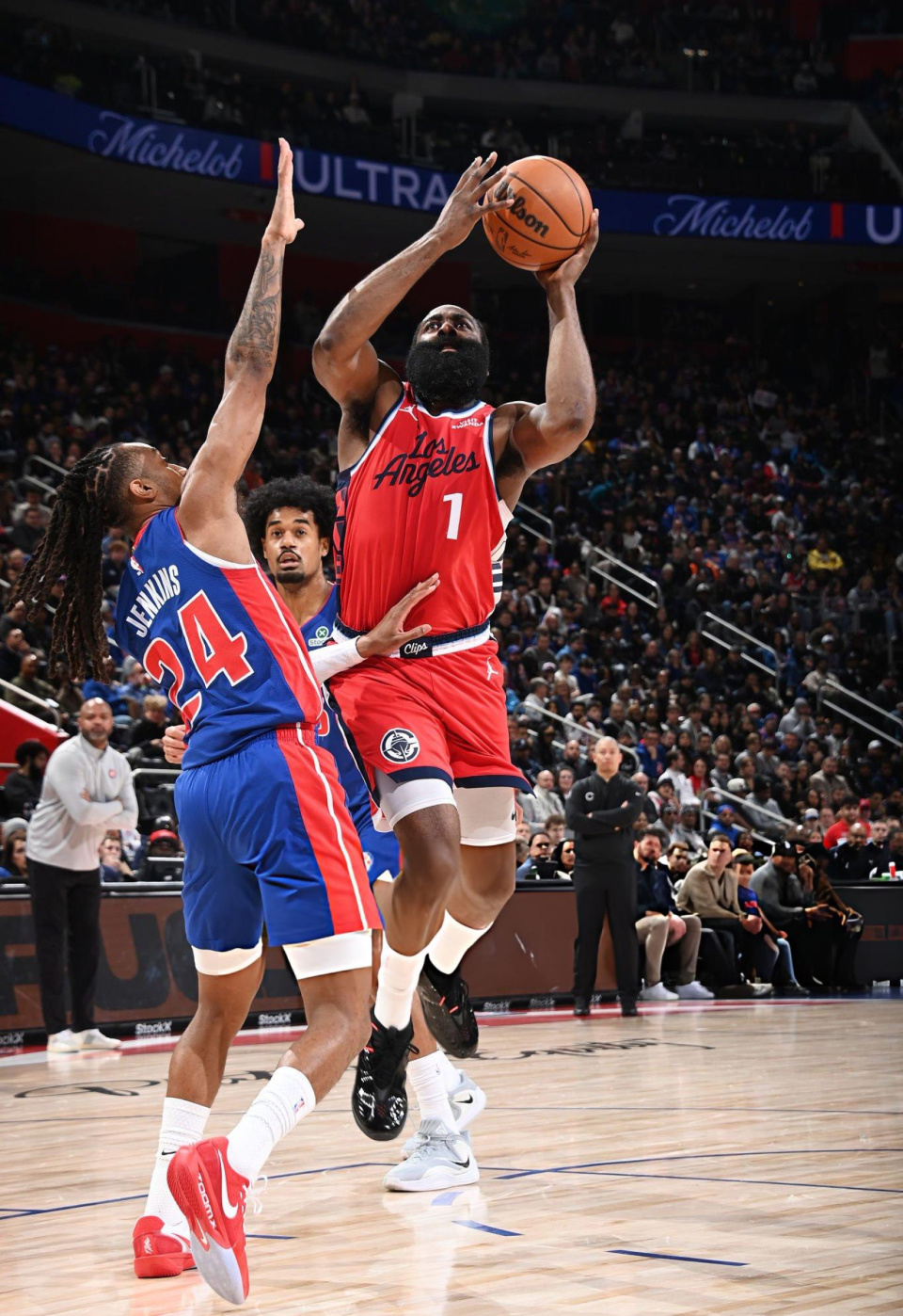 首节比赛开始后,快船队手感十分糟糕,并且很快陷入了被动。哈登表现堪称灾难,他打满12分钟,但是7投仅1中,仅命中一次上篮,其中3次被封盖,三分球3中0、罚球3中3拿到5分1助攻,此外还有两次失误,快船队单节仅得到14分,落后活塞队14分。次节比赛,哈登手感依旧糟糕,单节3中0一分未得,送出3个助攻。