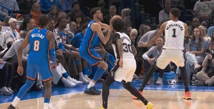 第三节开打,雷霆提升内线防守强度,给足文班身体对抗,不让他轻易接球。上一场马刺打森林狼,兰德尔第四节就是这样限制文班的。马刺只能飘在外线投篮,雷霆连续防守反击。第三节雷霆全队轰下40分,亚历山大独得15分!