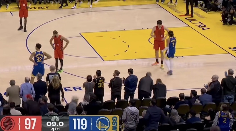 最后21.1秒!开拓者落后22分,双方不打了,勇士球员主动上前问候杨瀚森!