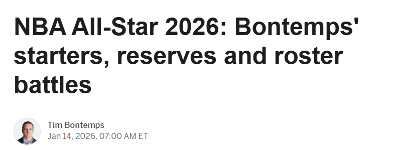 ESPN预测了东西部的首发与替补阵容——这份名单中将囊括铁定入选的全明星精英、首次入选的年轻新星,还有诸多令人纠结的选择。在这份预测名单上,五大国际巨星(亚历山大、约基奇、字母哥、东契奇、文班亚马)锁定首发,杜兰特和库里出现在替补位置上,而41岁的詹姆斯落选。