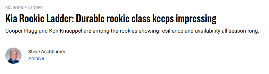 NBA官网新秀榜更新:弗拉格居首克努佩尔第2 开拓者乐福升至第9