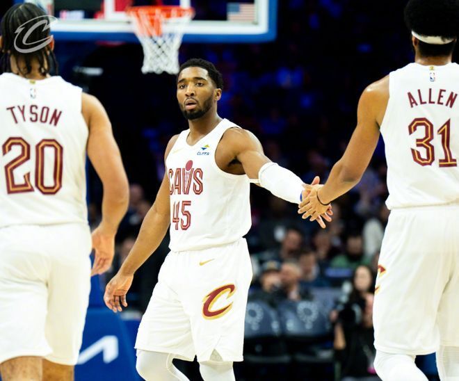 米切尔35+7+9打爆费城双枪,乔治14中7恩比德6失误,骑士双杀76人