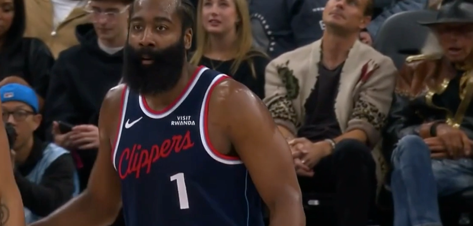 本节刚刚过半,小卡下场休息,哈登登场,快船的另外4名先发依旧留在板凳席。