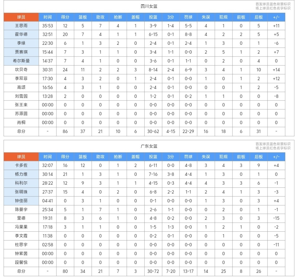 广东女篮80-86不敌四川,王思雨12+7,谁是输球罪魁?数据一目了然!