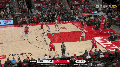 9、攻击力十足!火箭猛冲森林狼内线连续砍分