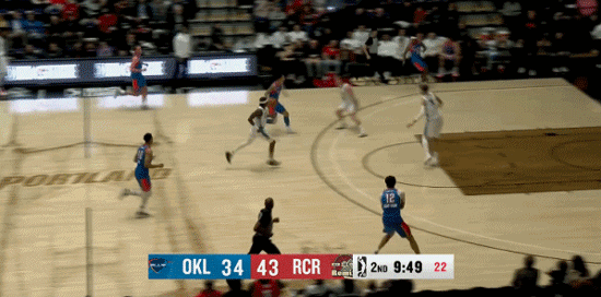 杨瀚森在低位拿球时,对手增加了协防。小杨出球很快,一记漂亮的横传找到底角的队友,可惜队友三分打铁。小杨自己拼到前场板,又来了一个击地传球,可惜队友上篮被破坏。上半场杨瀚森至少有4个妙传,没能转化成助攻。