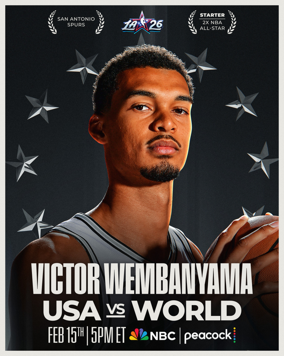 文班亚马迎来自己的第二次全明星之旅,他是2023年的NBA选秀状元,本赛季在马刺队场均得到 24.5 分、10.9 个篮板和 2.6 次盖帽!