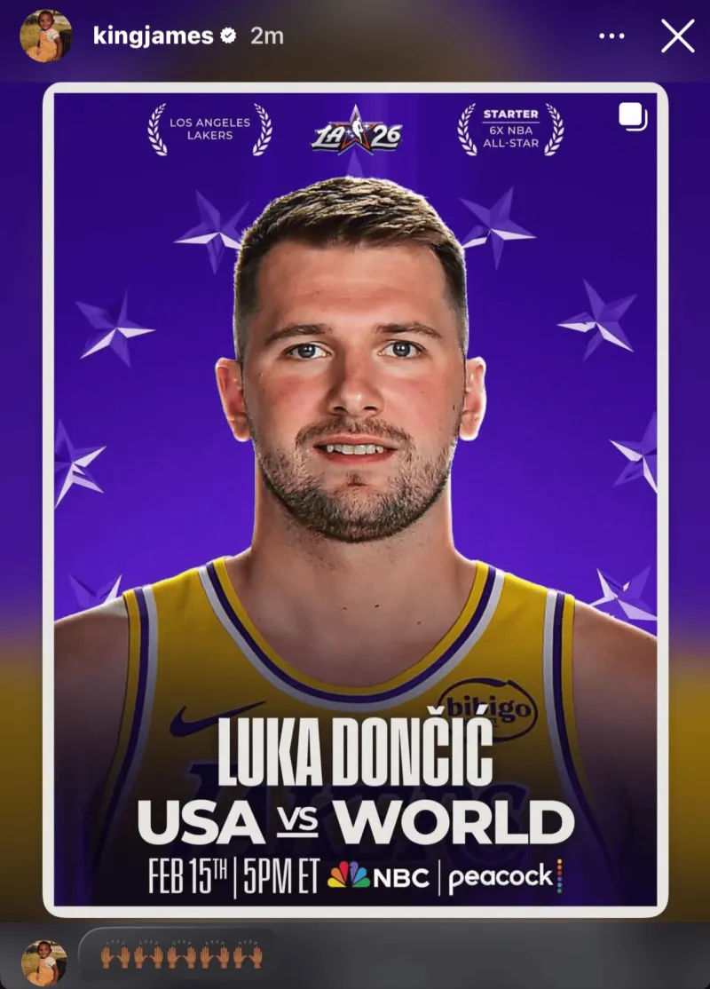 詹姆斯祝贺东契奇当选票王!连续21年首发纪录终结:三项投票仅西部第9