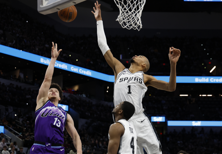 马刺123-110战胜爵士,文班亚马本场出战26分钟,18投10中,其中三分球12投7中,6罚6中,得到33分10篮板2抢断2封盖,他是队史第一位出场不到27分钟拿到30+10+2抢断+2封盖的球员。