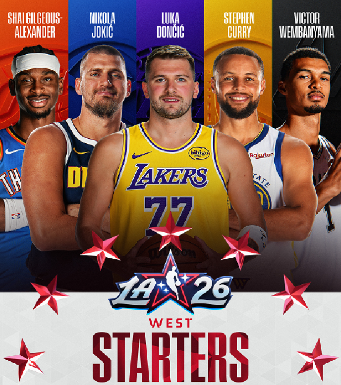 西部:东契奇+约基奇+亚历山大+库里+文班亚马;