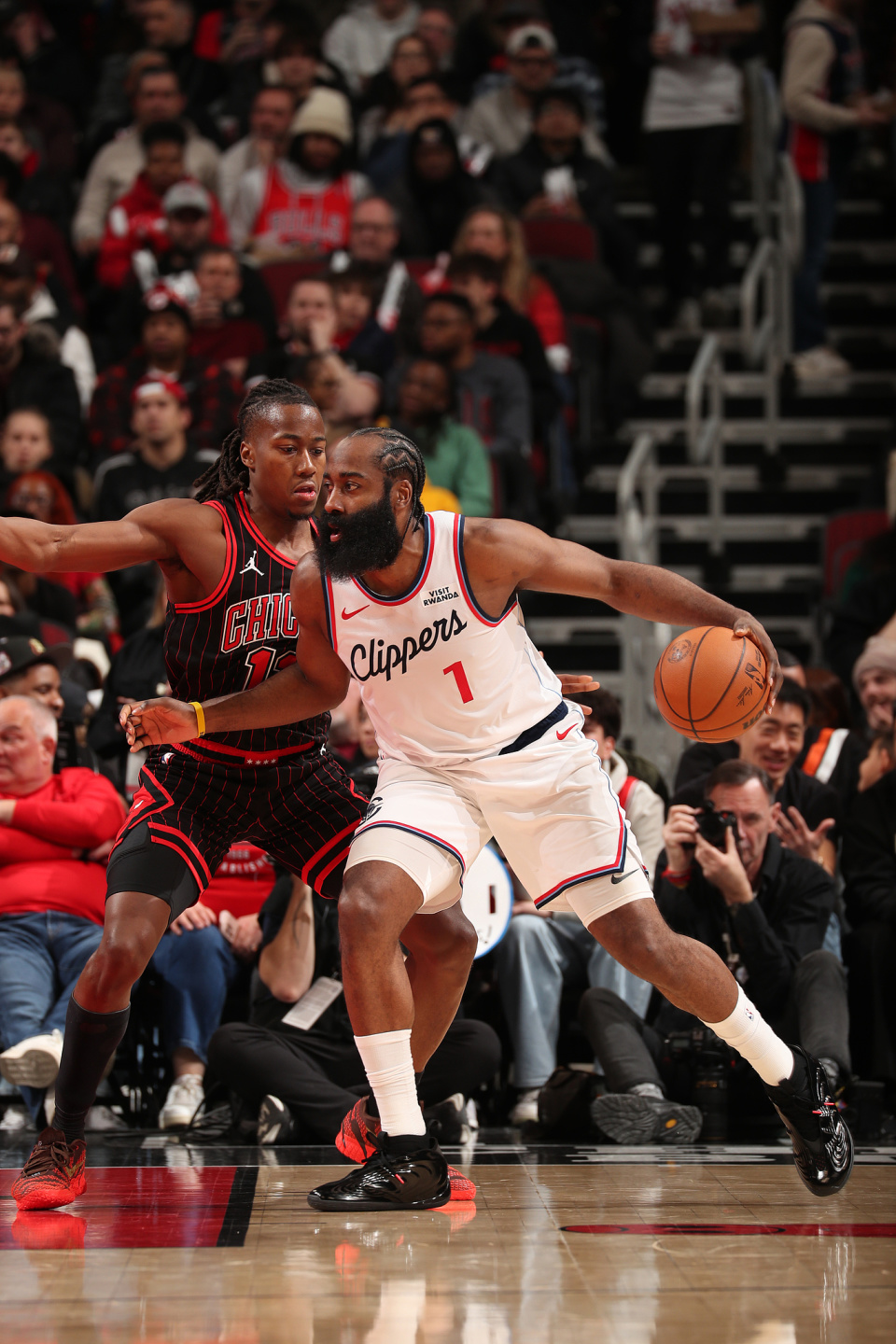 第二节哈登休息期间,快船进攻哑火并且被公牛打出20-7的反击高潮,可哈登重返赛场却无济于事,而且哈登6次出手仅仅命中1球,快船又被公牛打出25-12的进攻高潮,快船单节19-45净输26分,半场打完快船49-70落后到21分。