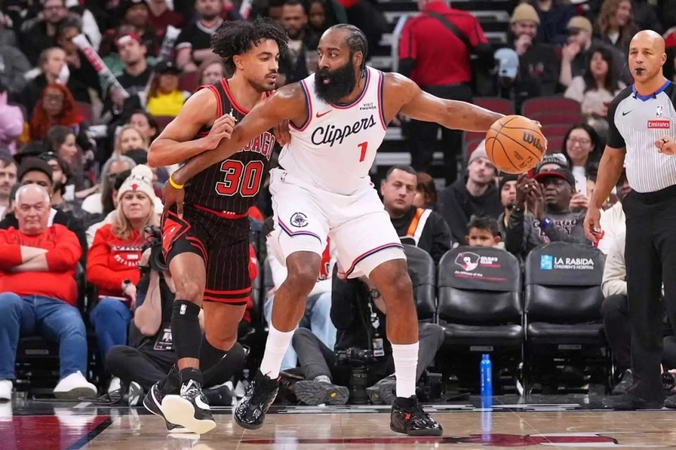 数据不会骗人,先看哈登。25投9中,三分9中3,拿24分5篮板6助攻,看着数据还行,但6个失误太致命,进攻效率也低得离谱。不过也能理解,伦纳德缺阵,哈登被公牛疯狂包夹,进攻空间被锁死,加上连续客场奔波,明显能感觉出他的疲惫感,手感差也是没办法的事,单核带队确实难。