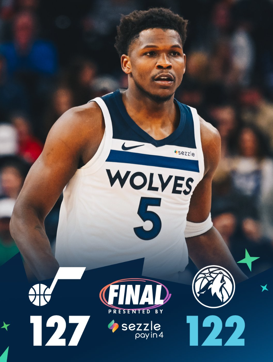 森林狼122-127被爵士逆转,森林狼吞下了一波三连败,爱德华兹空砍38分8篮板,随着湖人击败掘金后森林狼从西部第五直接掉到西部第七。