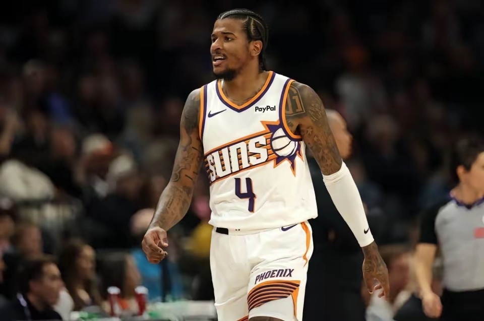 先说说复出的杰伦格林,这场替补出战20分钟,11中4、三分4中2,拿下12分2板3助,正负值+10,效率拉满。本赛季他只打了3场,太阳全胜,场均14.3分2板2.3助,三分命中率高达44.4%,这准头比在火箭时强太多!