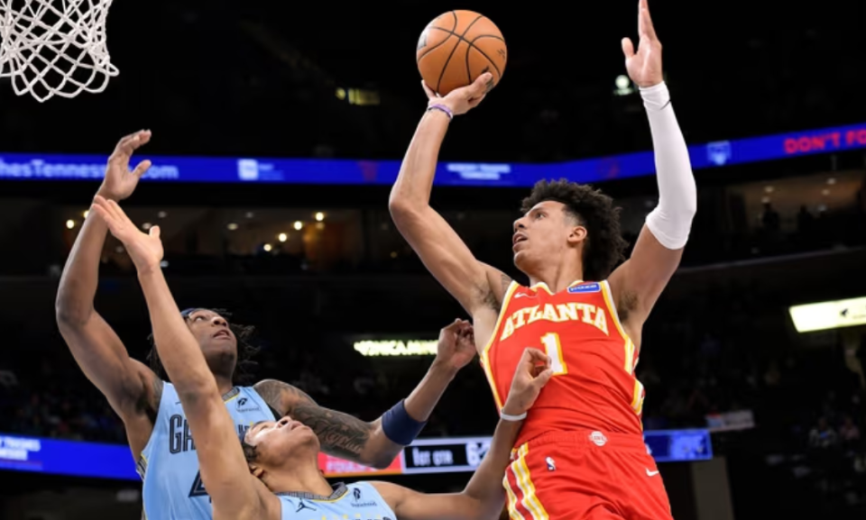 老鹰124-122险胜灰熊,贾伦-约翰逊21投10中,11罚10中,得到32分15篮板8助攻,这是他本赛季第二次拿到30+15+5,上一位多次打出这一数据的老鹰球员是1974年的约翰-德鲁。