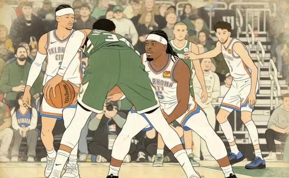 雄鹿当家球星字母哥本场比赛出战31分钟,11投8中高效砍下19分,另有14篮板7助攻入账,数据全面且高效,但在亚历山大19投16中爆砍40分的高光表演下,这显得杯水车薪,毫无意义。