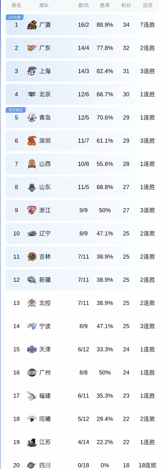 CBA狂欢夜!新疆大胜四川42分,江苏双杀天津,最新积分北京升至第4