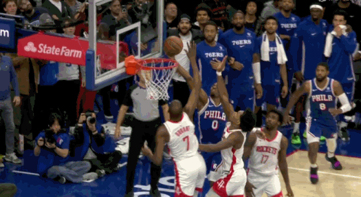 马克西第四节结束前的上篮,在打板后被火箭球员封盖。不过受限于规则,这一个明显的干扰球没法挑战,双方随后进入加时。76人主场球迷狂嘘裁判。