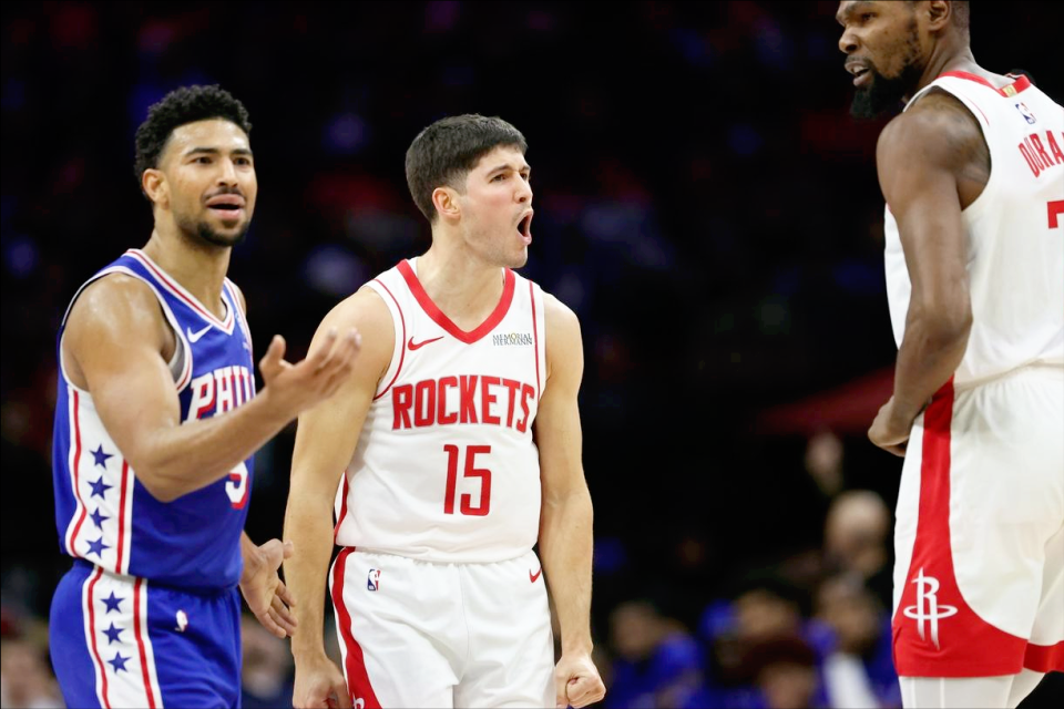加时赛更是火箭的灾难时刻,之前三分8中5的杜兰特,连续在同一个位置错失两记空位三分,手感突然断电;申京依旧软得像面条,没什么对抗能力;最致命的是阿门·汤普森,最后时刻无脑扎进76人人堆里出现失误,直接葬送了火箭最后的希望。