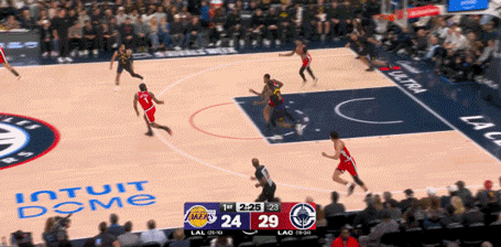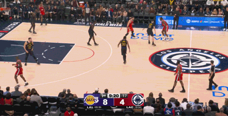 上半场打完,快船64-47领先湖人17分。快船两分球29中20,命中率高达69%。湖人罚球数10-3领先快船,篮板球16-24,助攻7-12。第三节开始,快船最多领先到26分。快船领先太多有点松懈了,湖人轰出14-3迫近分差。
