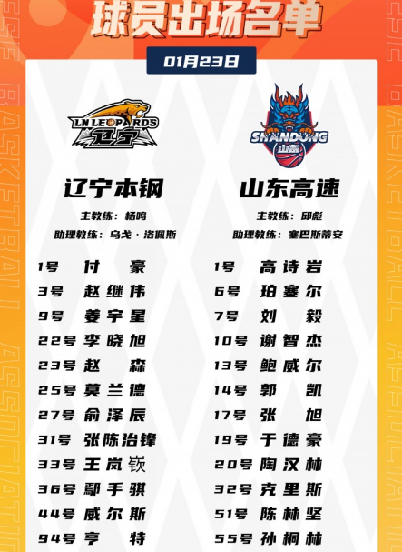 辽宁:威尔斯23分5助3断、赵继伟12分7板6助、莫兰德11分11板3助3断2帽、付豪9分6板、王岚嵚9分5助、亨特8分。