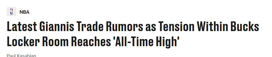 “字母哥的沮丧情绪已经到了顶点。他在为球队输球而懊恼,也在为当前的处境而心烦。我可以这么说,过去几周,我断断续续采访了十余位消息人士,雄鹿队内、更衣室内的紧张感确实已升至历史峰值,而且能明显看出球队内部正出现分裂的苗头。原因很简单,当一位像字母哥这样级别的球星心思活络,或是对自己在球队的未来感到迷茫,并且与管理层就未来走向展开激烈磋商时,整支球队必然会被巨大的不确定性所笼罩。”
