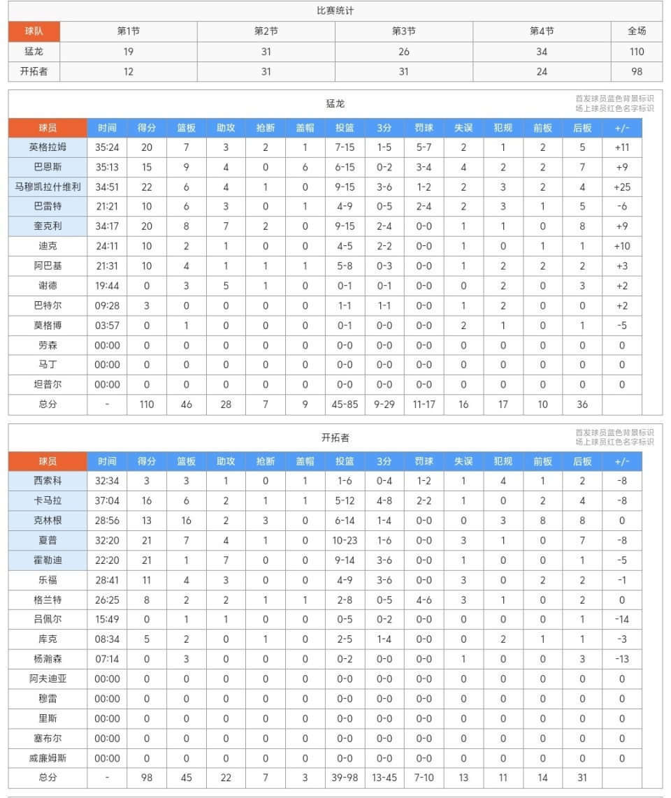 猛龙先发:英格拉姆、巴恩斯、马穆凯拉什维利、巴雷特、奎克利!