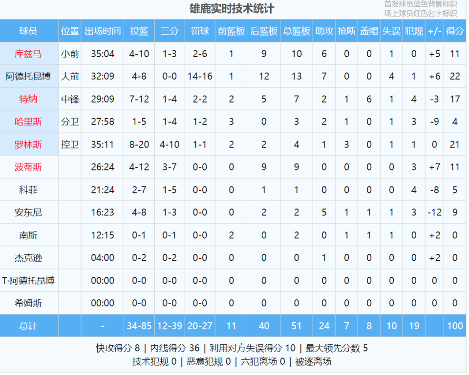 本场比赛,字母哥打了32分钟,8投4中,罚球16中14,拿到22分13篮板7助攻4失误,正负值+6。雄鹿上一场102-122不敌雷霆,字母哥同样出战32分钟,11投8中,罚球6中3,得到19分14篮板7助攻1抢断。这两场加起来只出手19次。