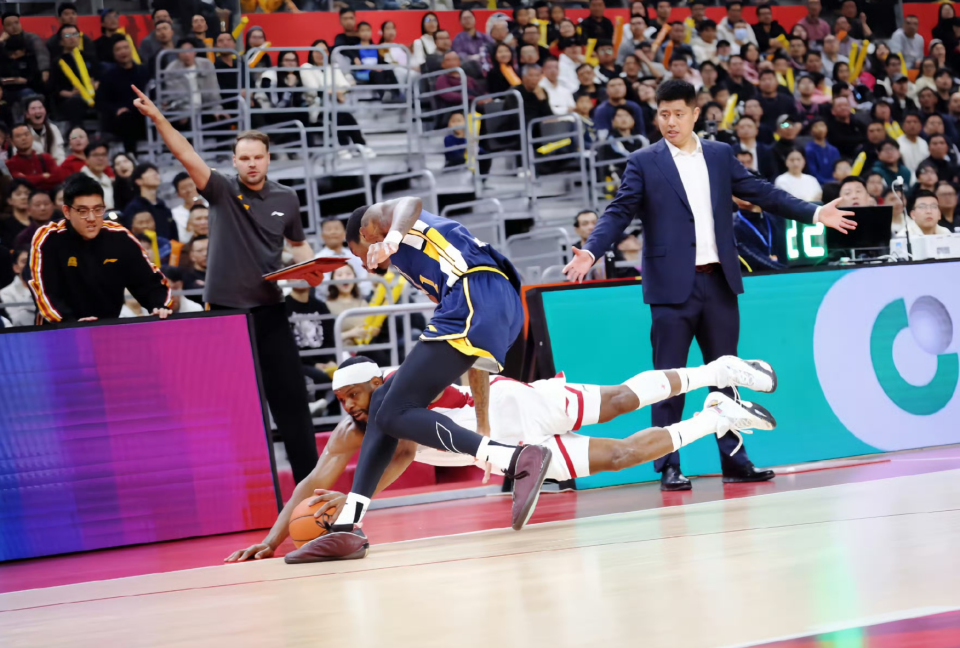 焦泊乔撞到迪亚洛,后者抱怨吃T,刘传兴也赔上技术犯规